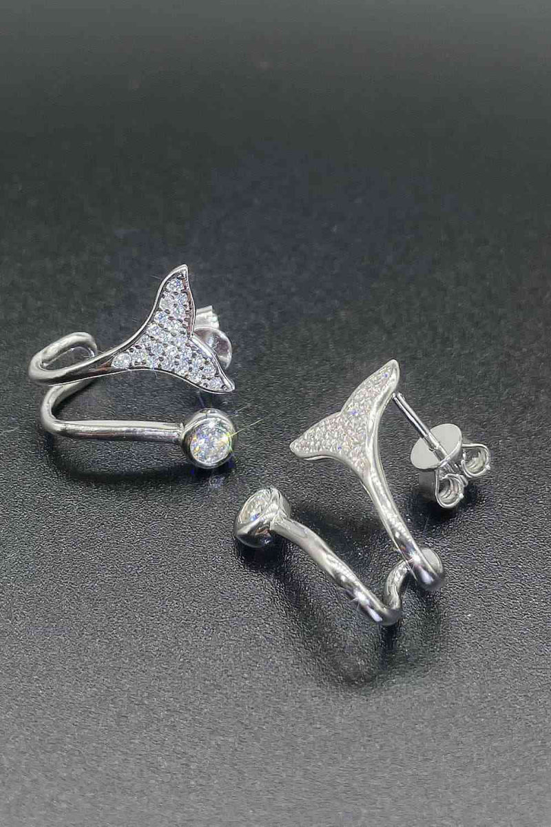 Moissanite Fishtail Rhodium-Plated Earrings