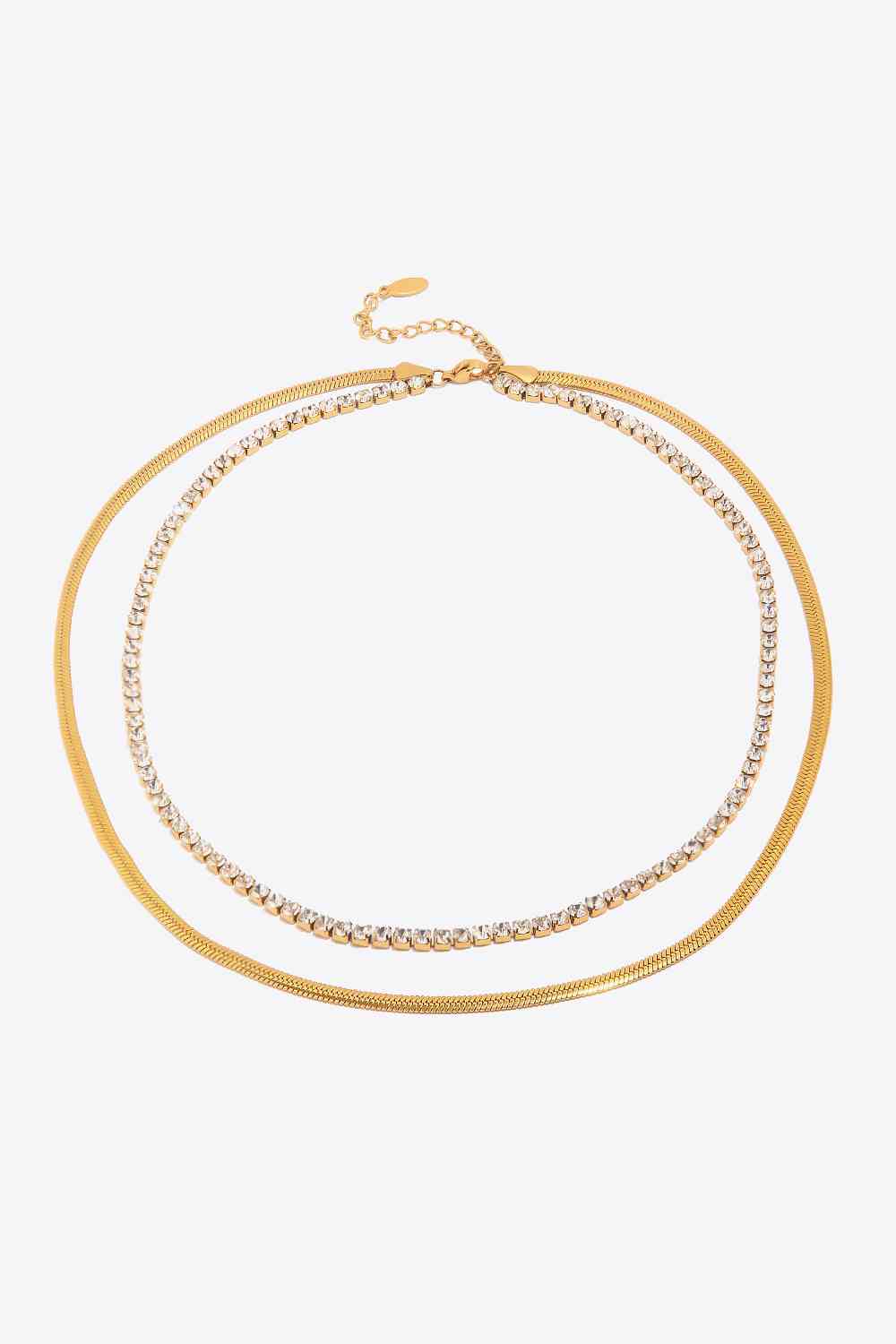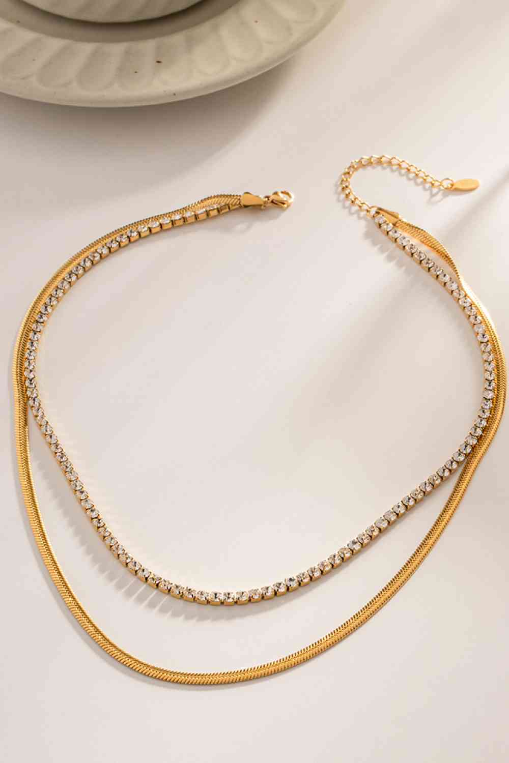 Double-Layered Inlaid Zircon Stainless Steel Necklace
