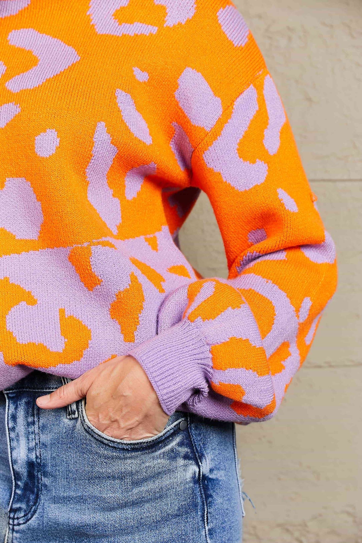 Woven Right Leopard Round Neck Dropped Shoulder Sweater