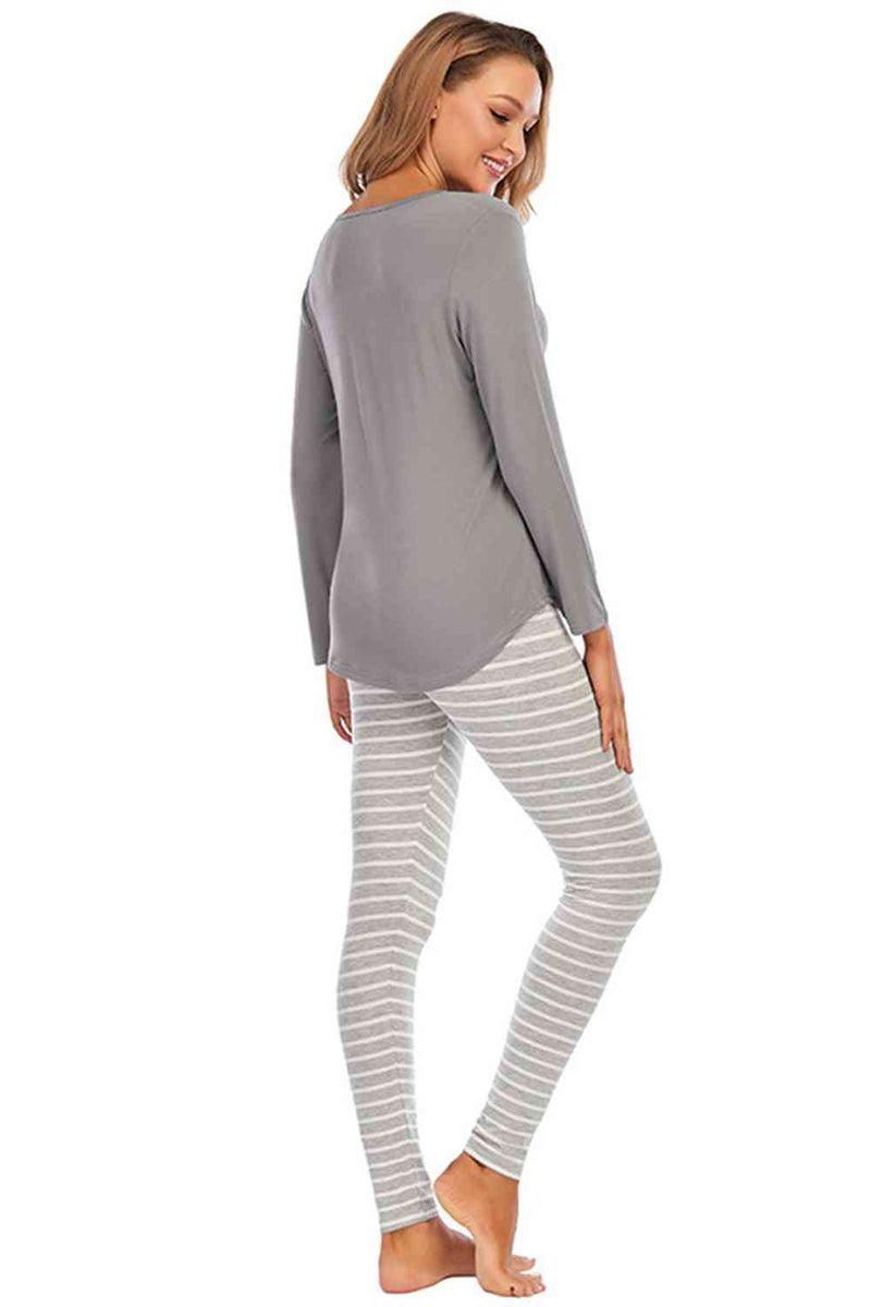 Round Neck Long Sleeve Loungewear Set with Pockets